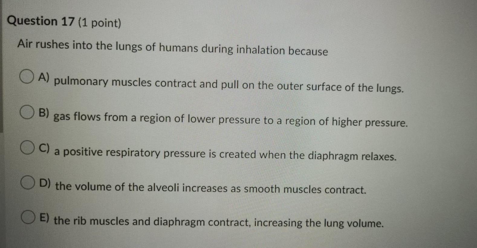 Solved Question 17 1 Point Air Rushes Into The Lungs Of Chegg Com